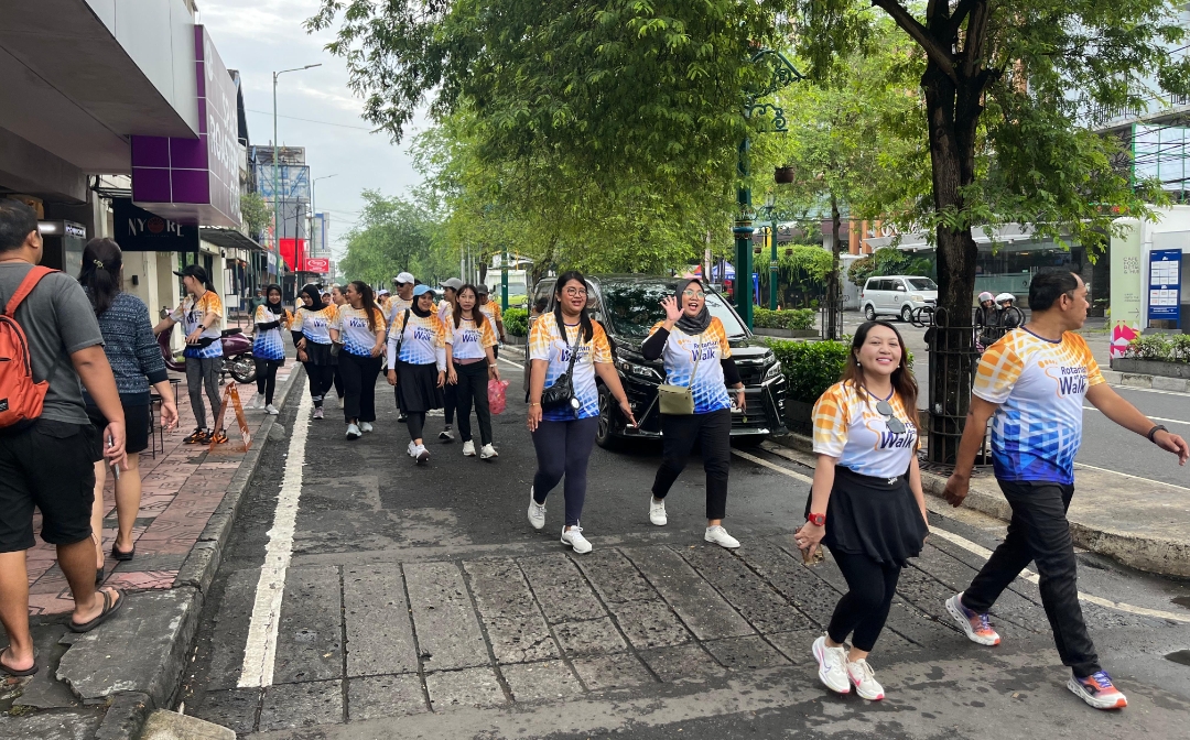Pukul 07.00. Peluit berbunyi. Pelan tapi pasti, setelah sedikit sambut oleh Ketua, lautan Rotarian, non Rotarian berkaus kuning biru, mulai bergerak, menyusuri Jalan Margo Utomo dengan semangat pagi. Anak-anak berlari kecil, orang dewasa berjalan riang, lansia dipapah pelan.
