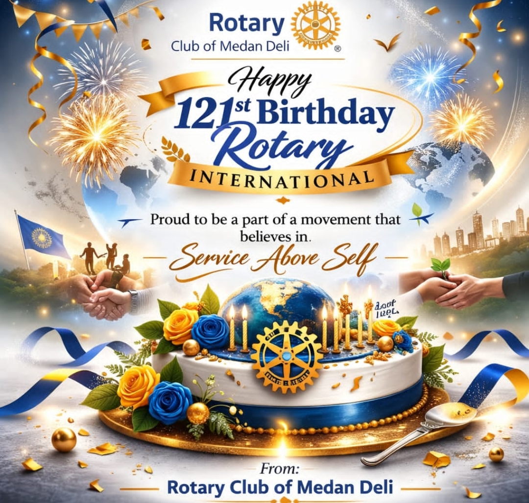 Medan, RotaryIndonesia.com – Rotary Club of Medan Deli dengan penuh kebanggaan dan sukacita mengucapkan selamat atas 121st Anniversary Rotary International — sebuah tonggak sejarah yang merefleksikan lebih dari satu abad dedikasi, pengabdian, dan dampak nyata bagi dunia.
