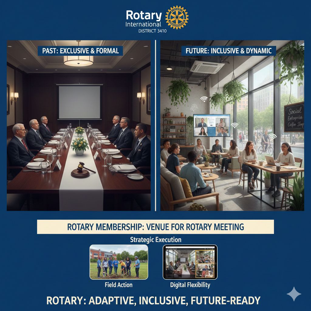 Selama satu abad, Rotary International mengandalkan hotel bintang sebagai simbol profesionalisme dan stabilitas. Namun, data menunjukkan ada “gap persepsi” antara generasi Baby Boomers dan Gen Z atau Millennials. Bagi mereka, ruang formal sering diasosiasikan dengan eksklusivitas kaku, sementara nilai utama yang mereka cari adalah autentisitas dan dampak sosial.