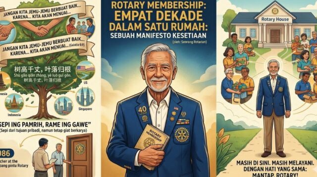Saat itu, 1986, usia saya 34 tahun. Saya berdiri di ambang pintu Rotary bukan sebagai CEO dengan segudang capaian, tapi sebagai seorang guru sederhana yang membawa satu tekad sederhana: Kemantapan hati menemukan teman yang seirama.
