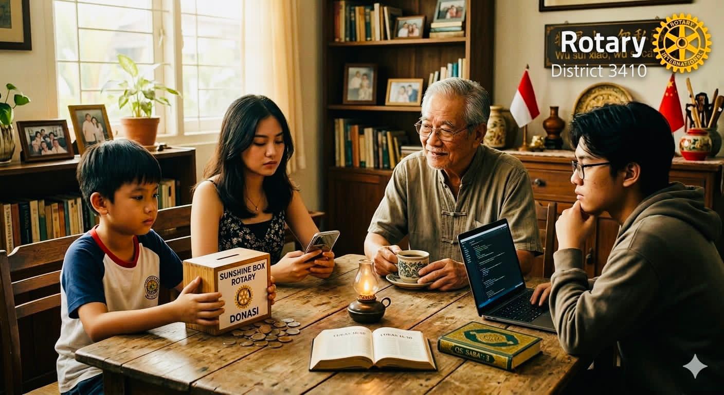 Sore hari di atas meja di rumah Opa Lie, ada kotak Sunshine Box Rotary. Alung menggoyang-goyang pelan.